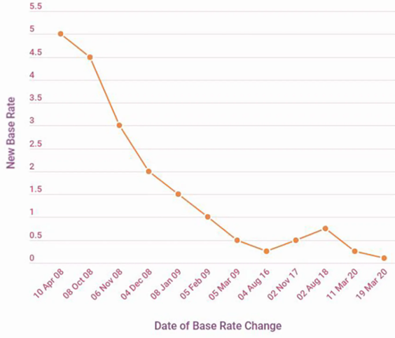 Ever since the base rate fell sharply during the global financial crisis of 2008/09 it has sat below 1%.