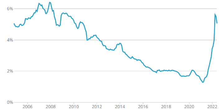 The chart below shows the average quoted mortgage rate for a five-year fixed mortgage at a 75% loan-to-value. You can see that rates have risen sharply in the last year, to levels last seen during the global financial crisis of 2008/9.